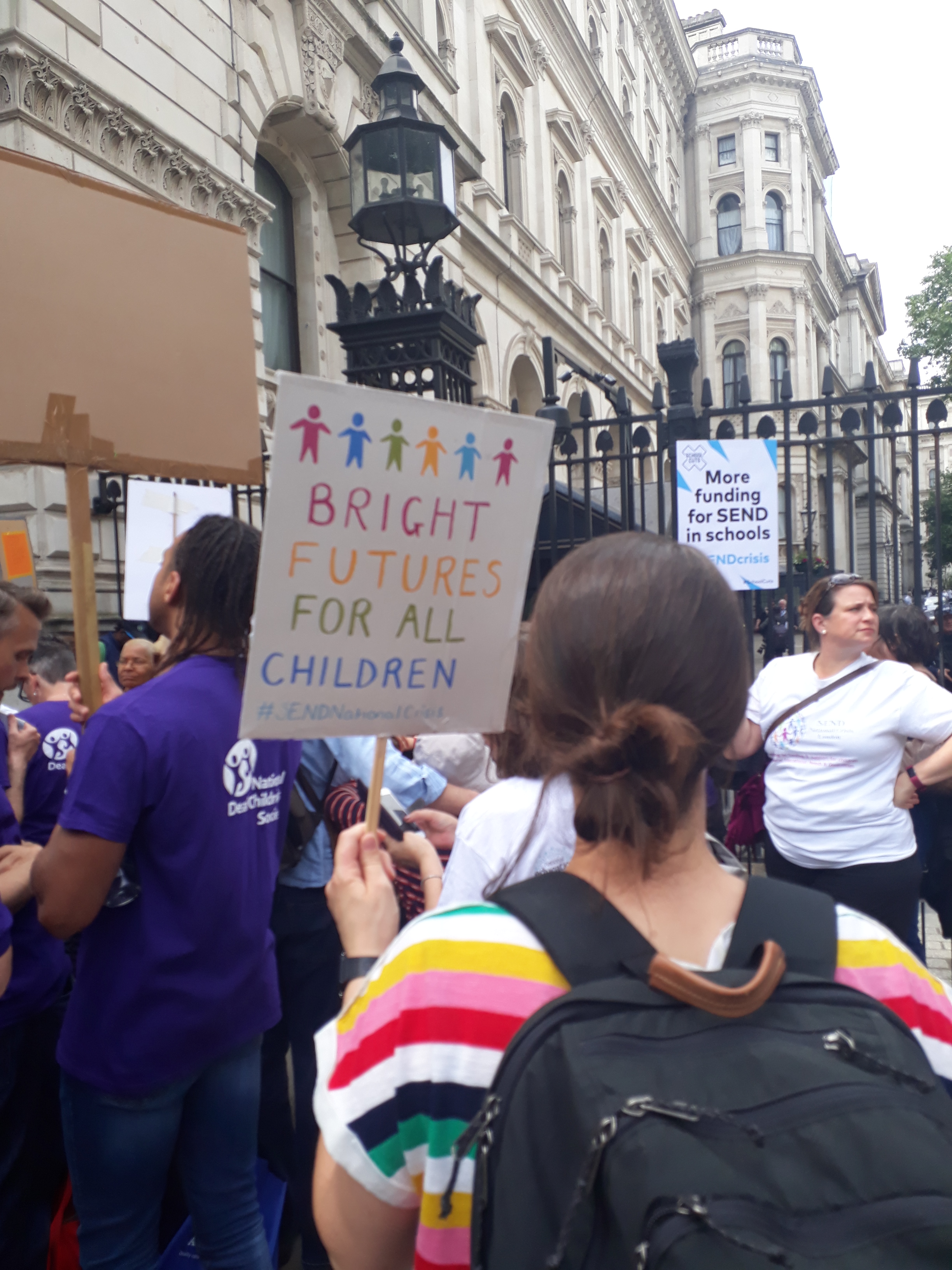 We found the whole event very encouraging and felt hopeful to see so many parents and families with their SEN and disabled children at the march. Spirits were high, lots of placards, and chants in a loud but friendly way at the entrance of 10 Downing Street.
