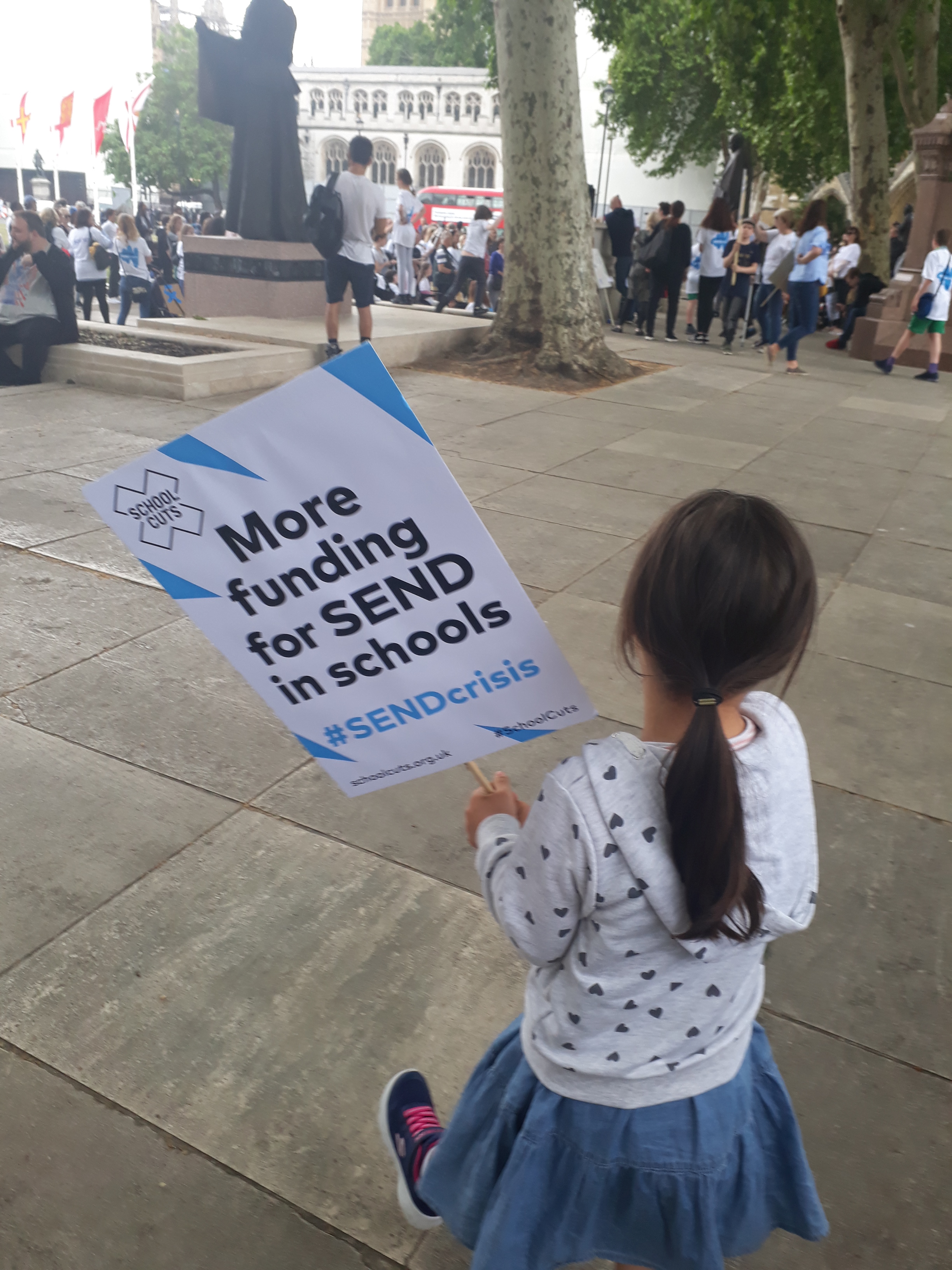 Today, sendPACT joined hundreds of parents and carers in Westminster, London, to march against SEND funding cuts. With kids in tow during half term, it was an event we didn’t want to miss.