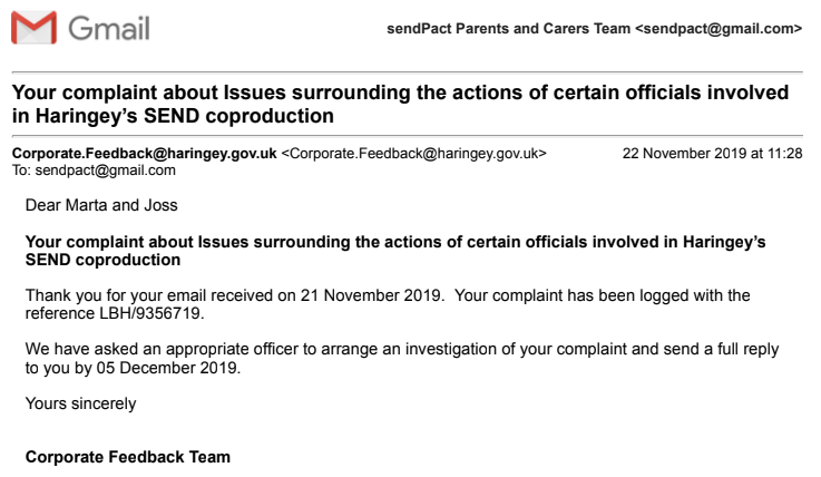 It has been exactly two months today since we sent Haringey Council sendPACT’S formal complaint about coproduction in November.
